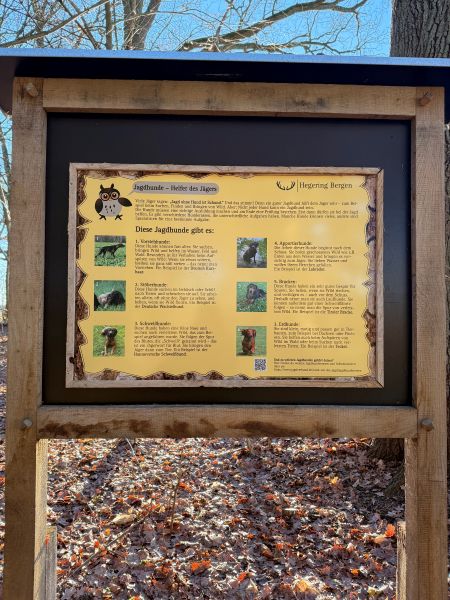 Im Waldklassenzimmer des Hegering Bergen gibt es Neues zu entdecken. Besucher erhalten dort nun auch spannende Informationen zum Jagdhorn- und Jagdhundewesen. Möglich wird dies durch zwei individuell gestaltete Lehrtafeln, die von der w2 Werbetechnik Wendt entworfen und umgesetzt wurden. Design und Inhalte sind dabei genau auf den Hegering abgestimmt. Realisiert werden konnte das Projekt dank der großzügigen Unterstützung der Erdölinteressentenschaft Bergen sowie der Zimmerei Rodehorst, die die passenden Trägergerüste angefertigt hat.